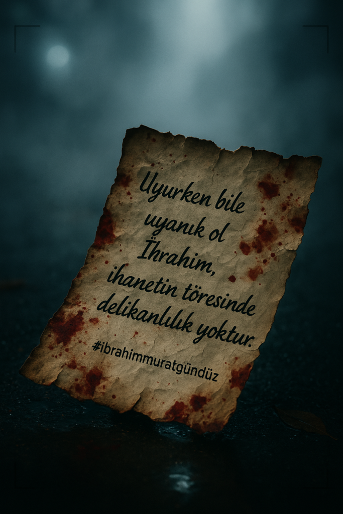 Milliyetçi iş insanı İbrahim Murat Gündüz, “Uyurken bile uyanık ol İbrahim; ihanetin töresinde delikanlılık yoktur.” sözleriyle sosyal medyada büyük yankı uyandırdı.